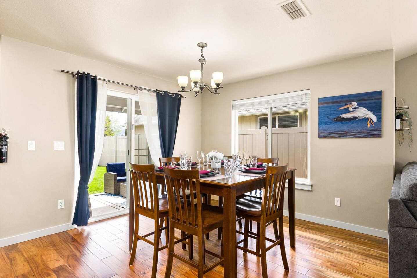 The neighborhood is nestled at the end of a quiet street tucked off of the beaten path. The culd a sac is far enough away for privacy and seclusion but close enough to get to whatever you may need during your stay. Enjoy an adult beverage in the front yard seating area while watching the kids play or just enjoying the evening sunset. Hang out in the seating area in the back yard while playing a game of cornhole while BBQing. The neighborhood accommodates for any and all of these sorts of activities and is great for kids.